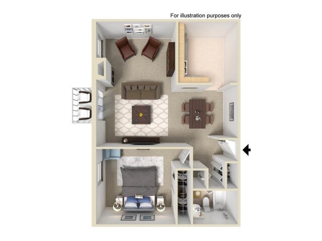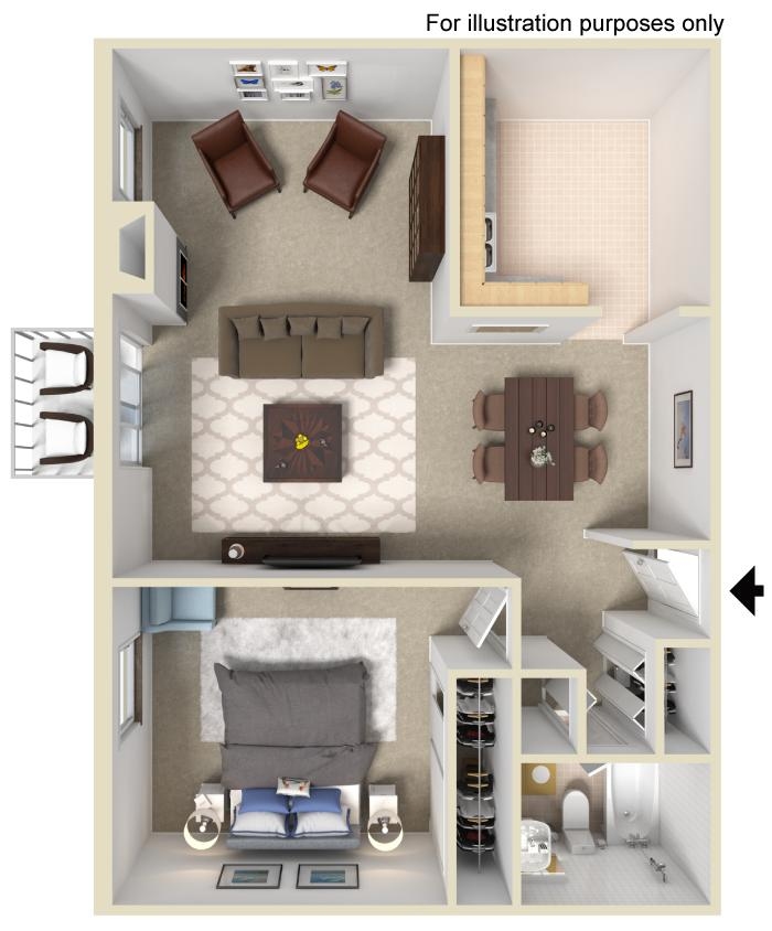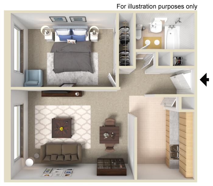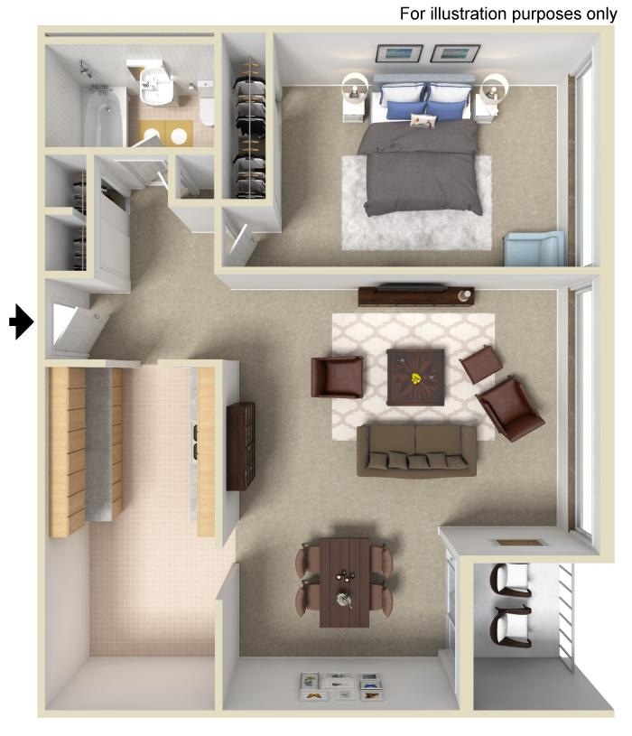 1 Bed, 1 Bath, 590 sq ftModel Gallery