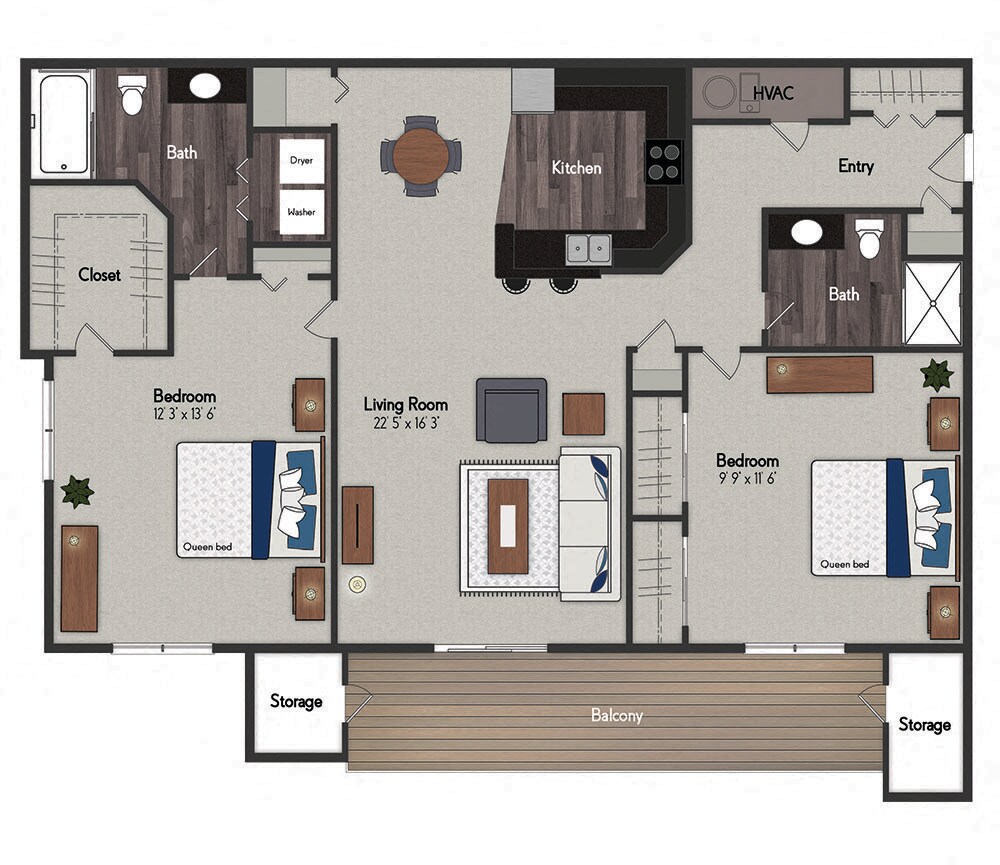 Apartment Model: RegencyFrom $1,4002 Bedroom, 2 Bath, 1148 sq ftUnavailable![]() - Regency - Floorplan 1
