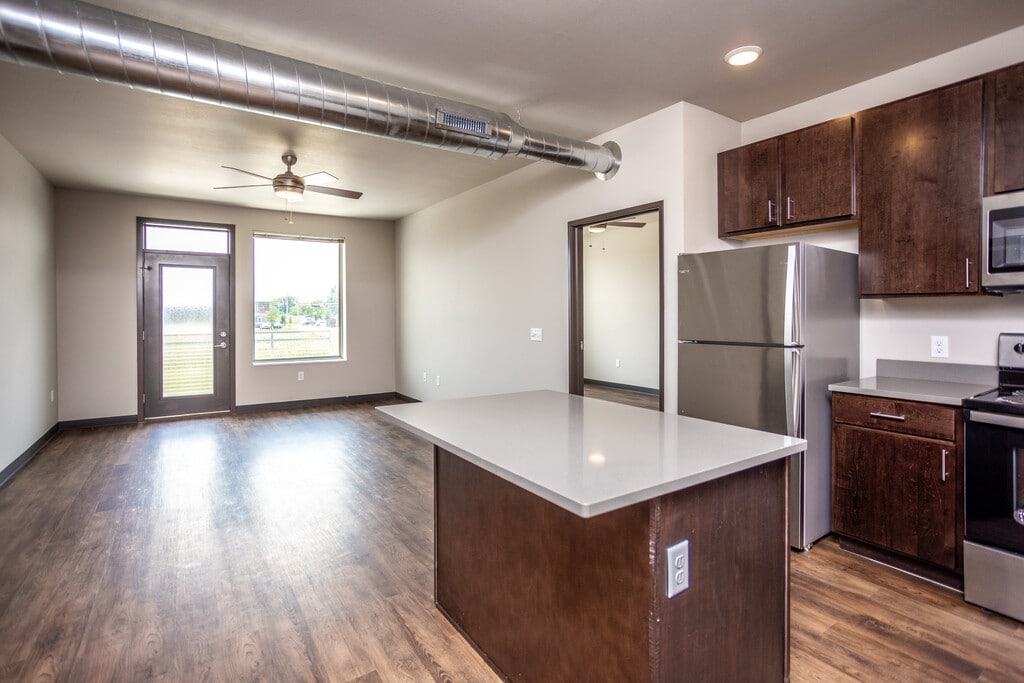 Studio to 2 Bedroom Apartments at Brick Towne at Prairie Crossing currently range from $825 to $1,450
