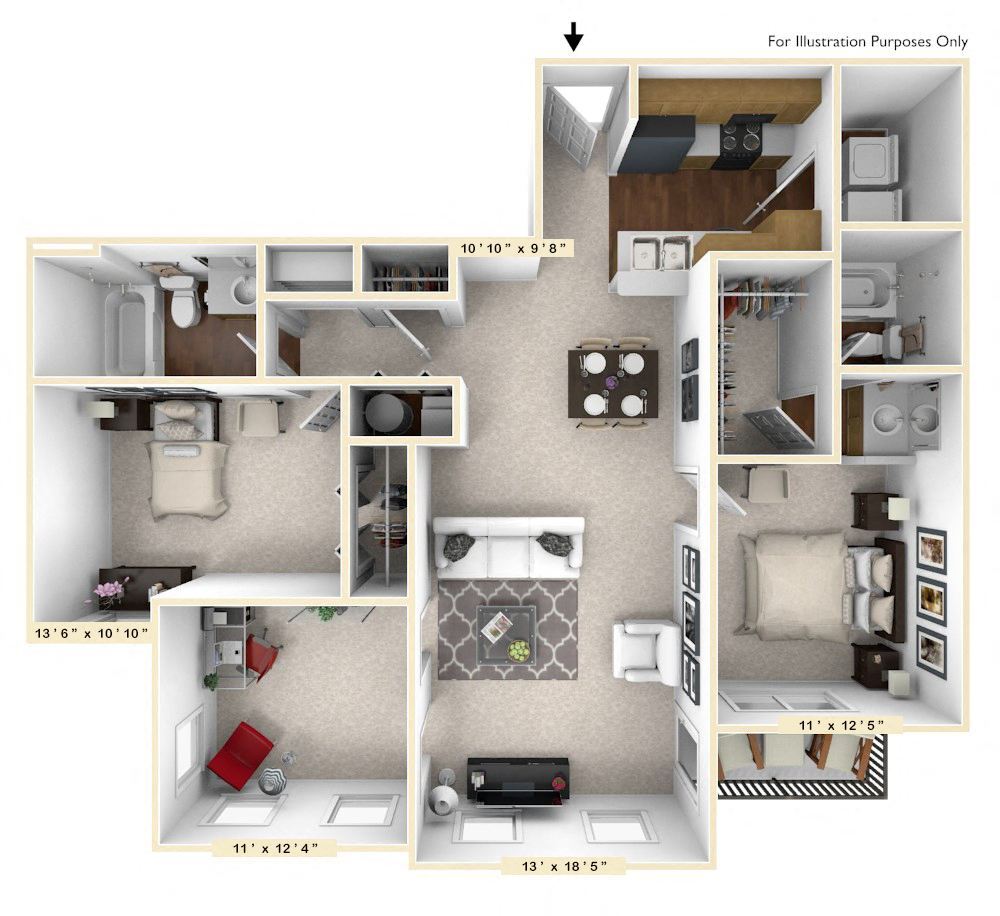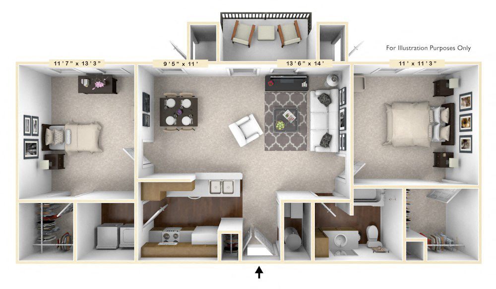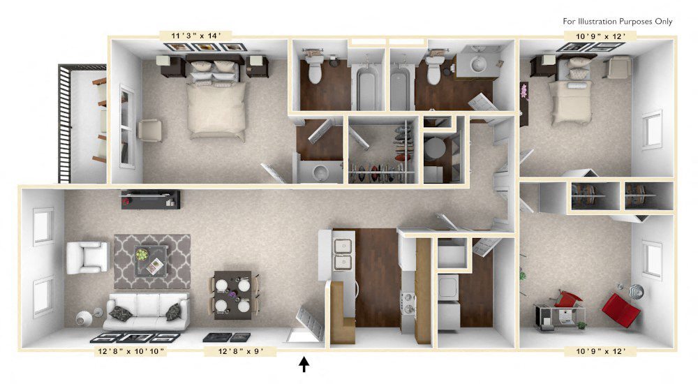2 Beds, 2 Baths, 1111 sq ftAvailable NowCheapest 2 BedroomThis is the cheapest 2 Bedroom at this PropertyModel Gallery