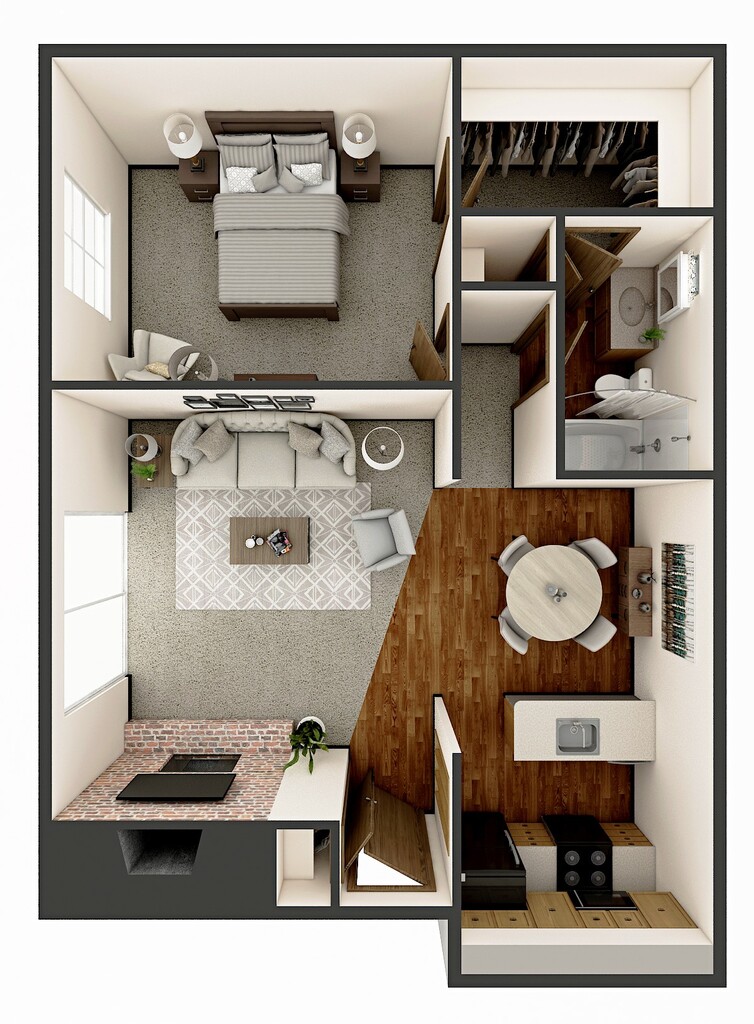 1 Bed, 1 Bath, 550 sq ftModel Gallery