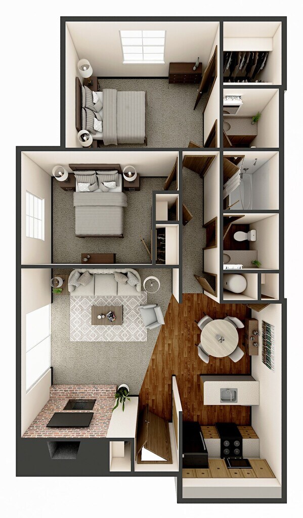 1 Bed, 1 Bath, 738 sq ftAvailable NowLargest 1 BedroomThis is the largest 1 Bedroom at this PropertyModel Gallery