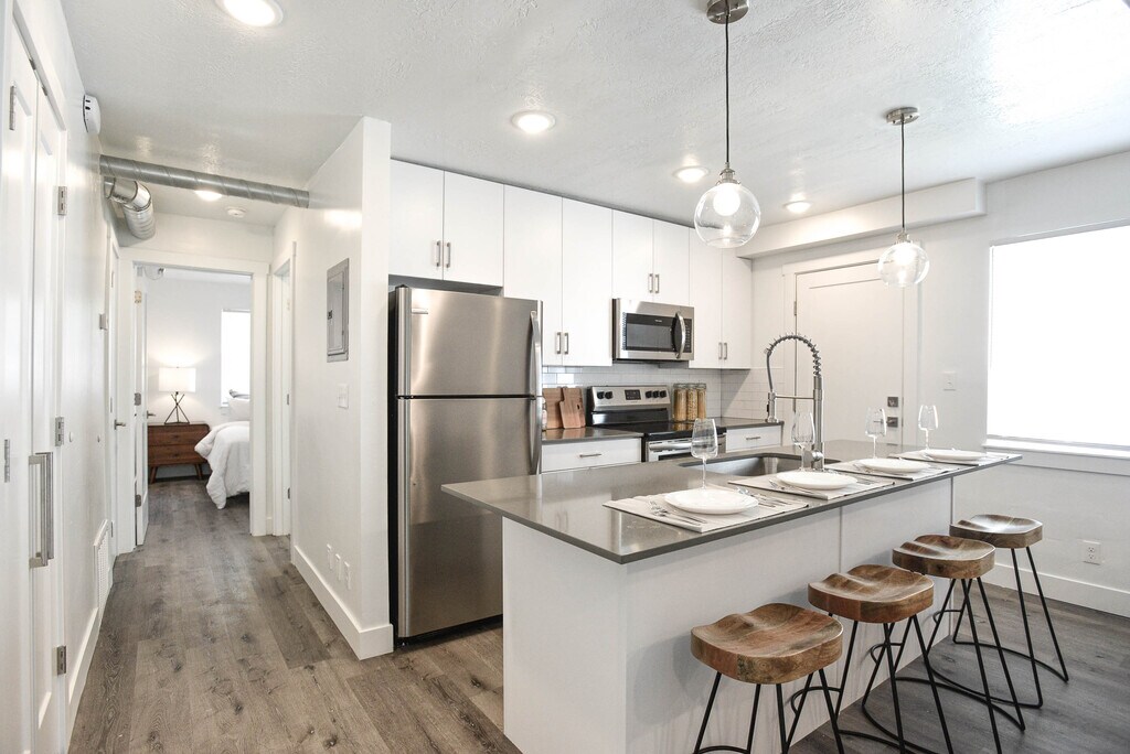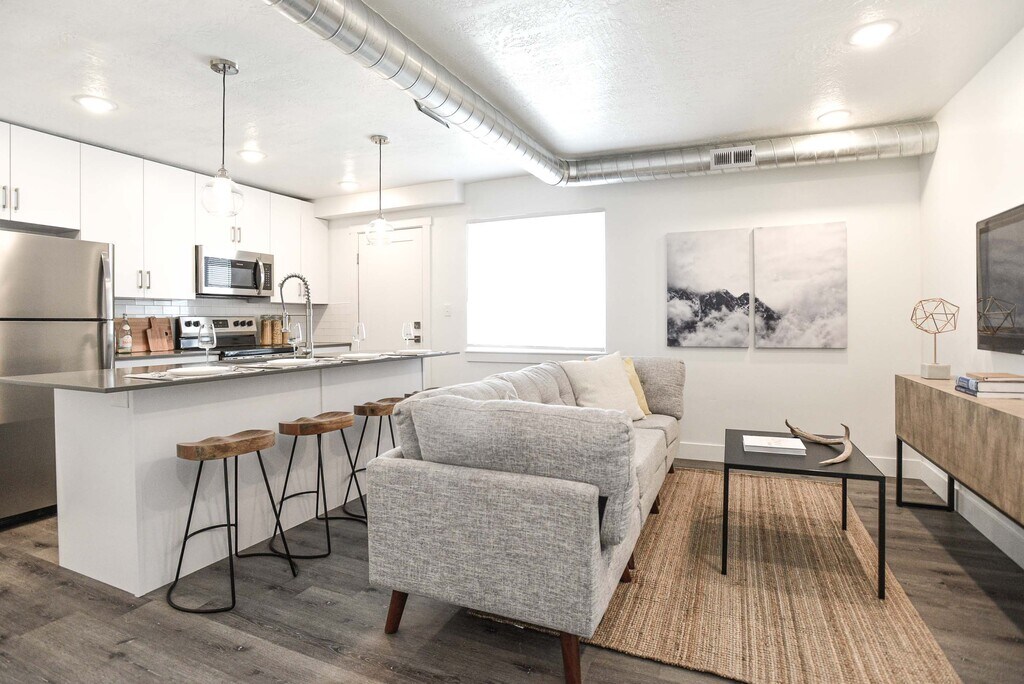 Be one of the first to live in the brand new Brickyard Flats! No detail has been overlooked in this modern 10-unit property within walking distance to everything that Sugarhouse has to offer. The modern unit features gorgeous new kitchens with quartz countertops, white cabinets, modern hardware, wood floors, and stainless steel energy efficient appliances. The bathrooms feature new tile work throughout and designer grade fixtures. Washer/dryer combo units are included in each unit which allows you to start a load and come home to dry clothes. Brand new energy efficient heating and air conditioning throughout result in low electricity bills and optimum comfort. Close to the Sugarhouse, Westminster College, downtown Salt Lake, several nearby restaurants and coffee shops makes this one of the city's most desirable and walkable locations. Ample parking and close to Trax. Come experience urban living at its finest. Shorter term leases available upon request. Call or Kaia to schedule your showing today. Apartment #8: 2 Bedroom / 1 Bathroom Unit (775 Sq Feet): $1,550 Pet friendly! $35 / month, per pet. Onsite Storage Units! $50 / month Fiber High Speed Internet for $70 / month. Security Deposit: $800 EQUAL HOUSING OPPORTUNITY *photos are of a similar unit and not necessarily the exact unit currently available for rent.