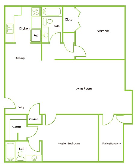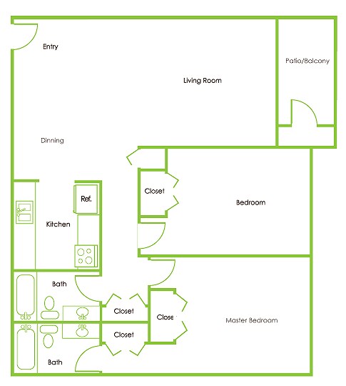 Apartment Model: 2 x 1$1,1992 Bedroom, 1 Bath, 796 sq ftAvailable Now![]()