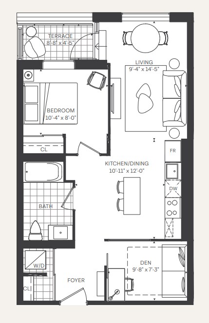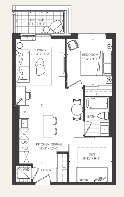 One Bedroom + Den - Floorplan 1 Apartment Unit: 0413Apartment Model: One Bedroom + Den$2,7851 Bedroom, 1 Bath, 680 sq ftAvailable Now![]()