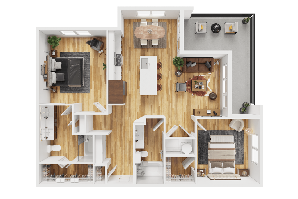 Apartment Model: E1 80%From $1,019Studio, 1 Bath, 560 sq ftAvailable February 20, 2026Floor plans are artist's rendering. All dimensions are approximate. Actual product and specifications may vary in dimension or detail. Not all features are available in every rental home. Please see a representative for details.