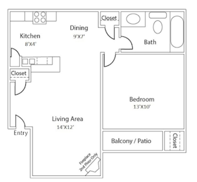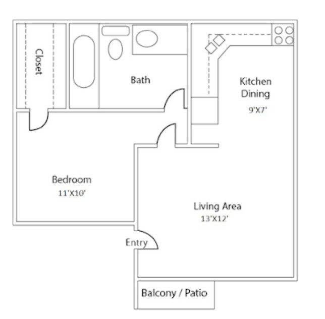 0/1f - Floorplan 1 Apartment Unit: 155Apartment Model: 0/1f$719Studio, 1 Bath, 408 sq ftAvailable NowFloorplan 0/1
