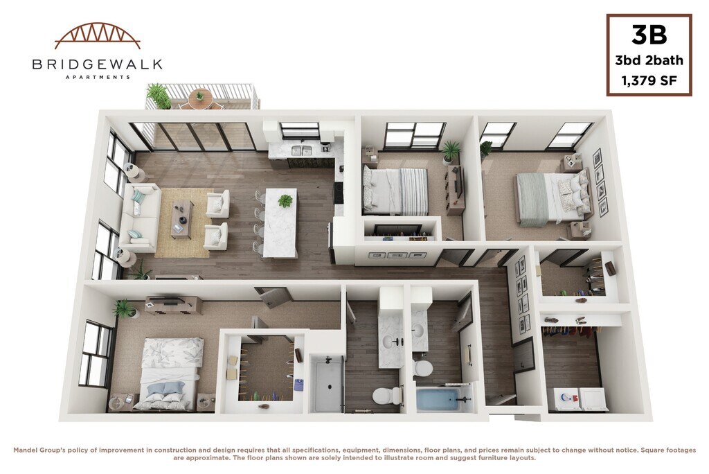 BridgeWalk Apartments offers Studio to 3 Bedroom apartments starting from $1,619 and having 431–1,391 sq ft. Here is the current pricing and availability: