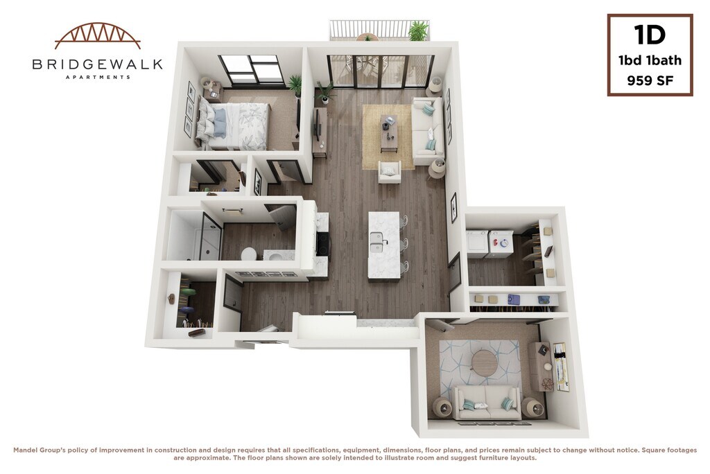 1 Bed, 1 Bath, 959 sq ftModel Gallery