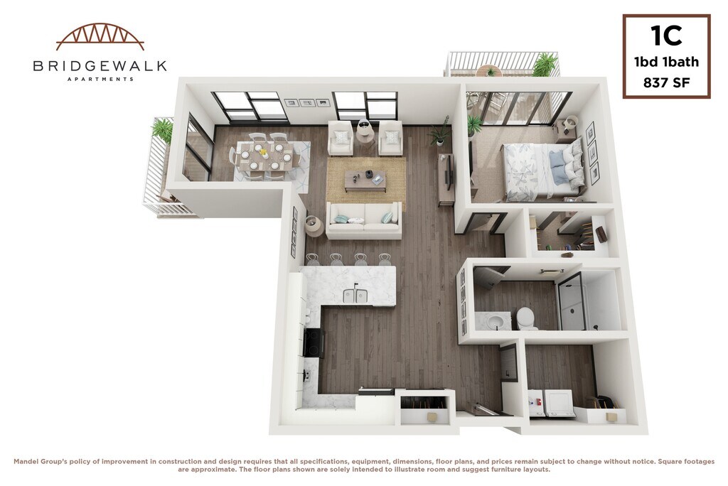 1 Bed, 1 Bath, 837 sq ftModel Gallery