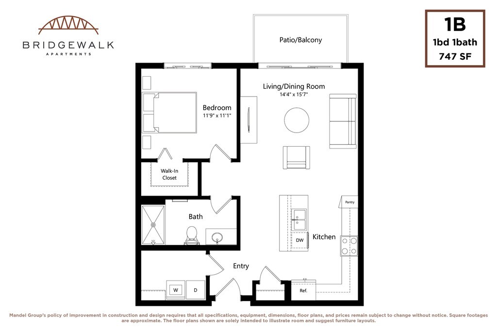 1 Bed, 1 Bath, 747-1116 sq ftAvailable NowLargest 1 BedroomThis is the largest 1 Bedroom at this PropertyModel Gallery