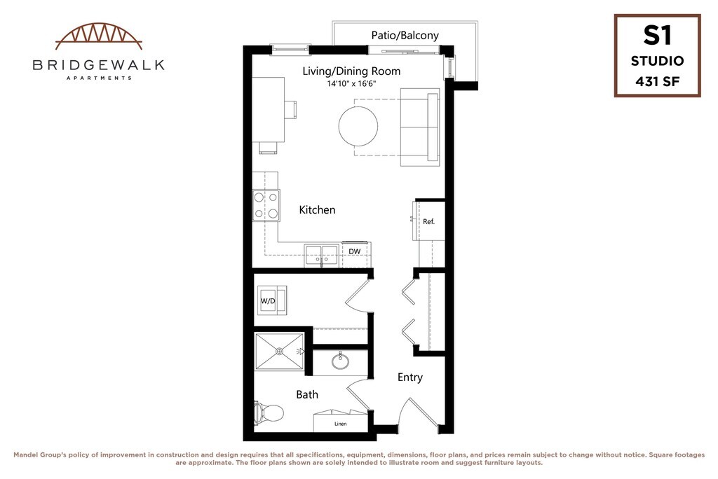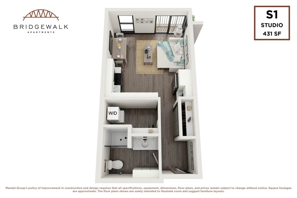 Studio, 1 Bath, 431 sq ftModel Gallery