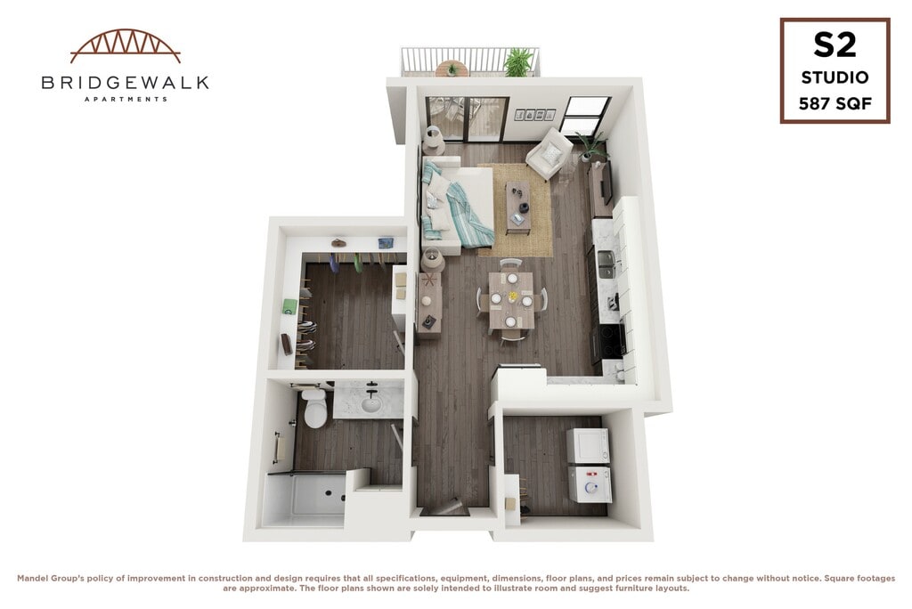 Studio, 1 Bath, 587 sq ftModel Gallery