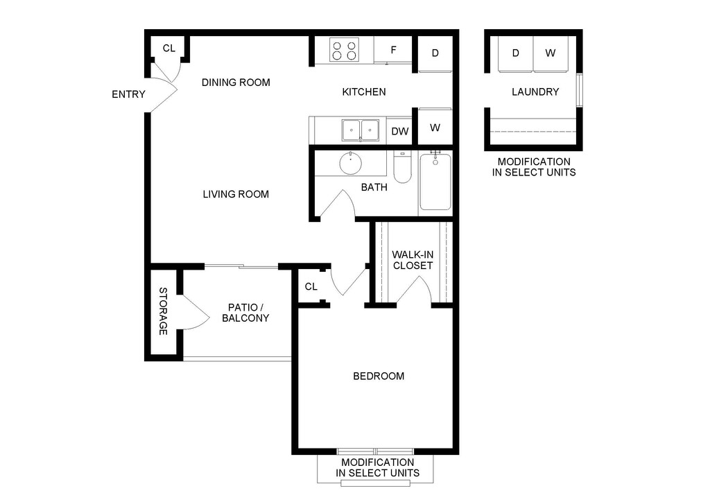 1 Bed, 1 Bath, 629 sq ftModel Gallery
