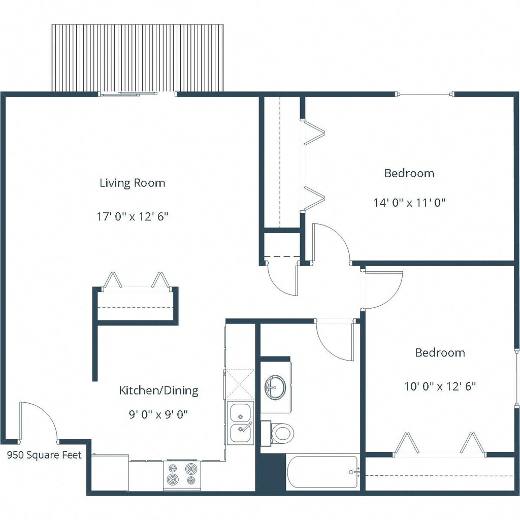 Apartment Model: Two Bedroom 21C2 Bedroom, 1 Bath, 950 sq ftAvailable Now![]()