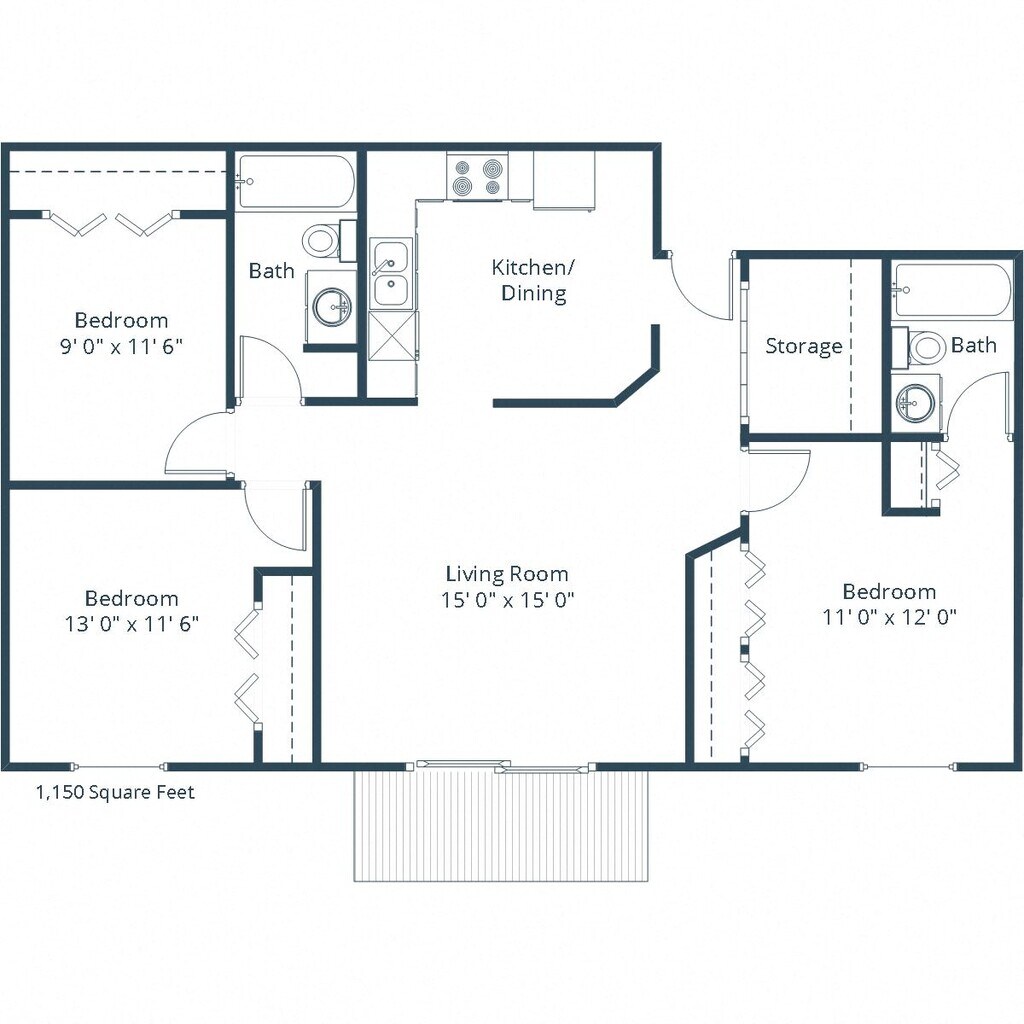 Apartment Model: Three Bedroom 32A3 Bedroom, 2 Bath, 1150 sq ftAvailable Now![]()