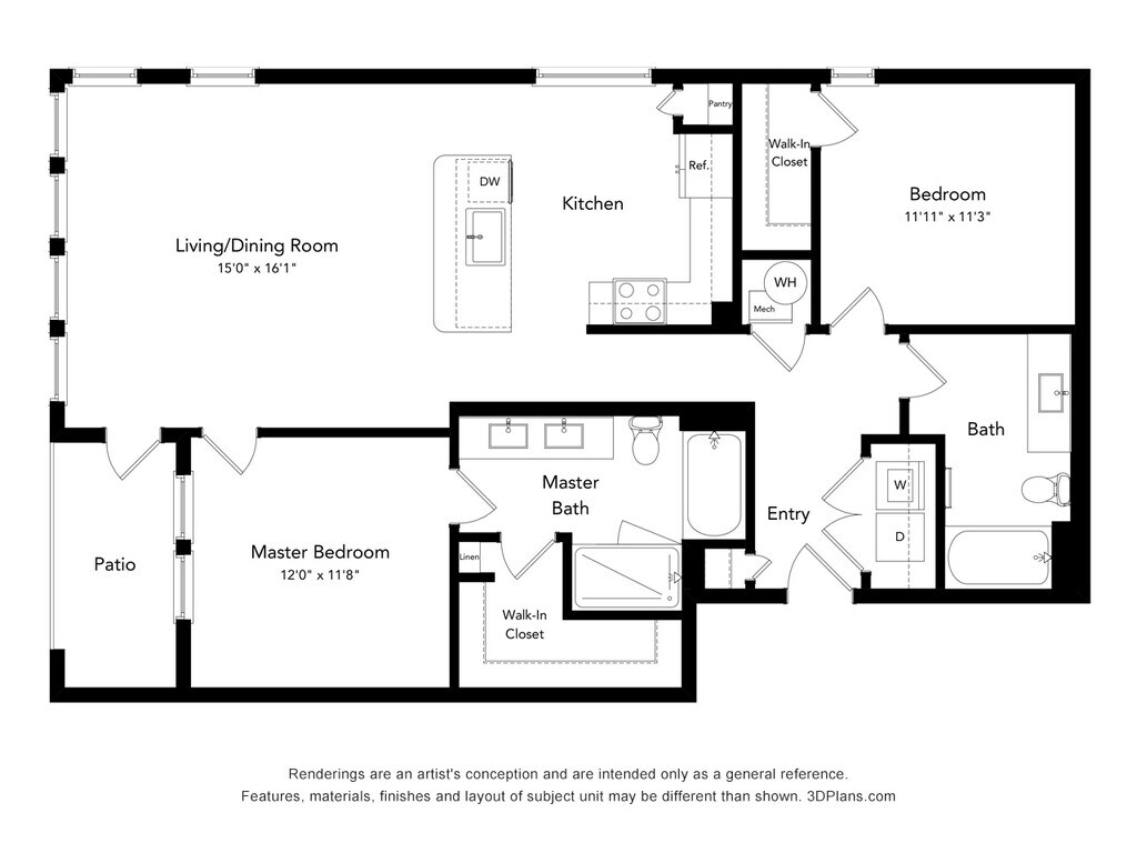 1 Bed, 1 Bath, 962-967 sq ftAvailable NowLargest 1 BedroomThis is the largest 1 Bedroom at this PropertyModel Gallery