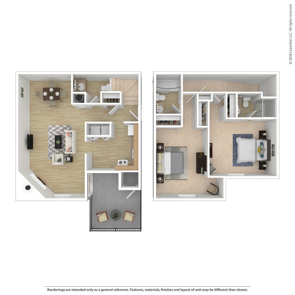2 Beds, 2.5 Baths, 1201 sq ftModel Gallery