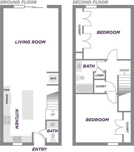 2 Bedroom 2 Bath Townhome - Floorplan 1 Two Bedroom