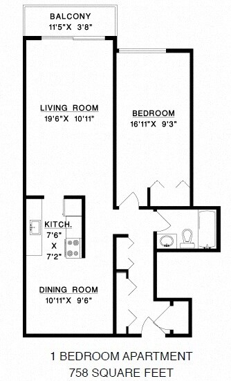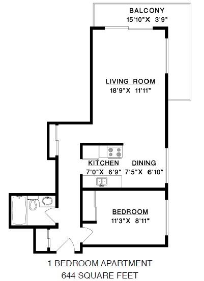 Shoreview 2 Bed 1 Bath B - Floorplan 1 Bridgeview 2 Bed 1 Bath B
