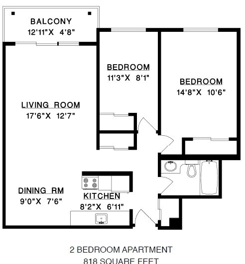 Apartment Model: Shoreview 2 Bed 1 Bath B2 Bedroom, 1 Bath, 818 sq ftUnavailable![]()