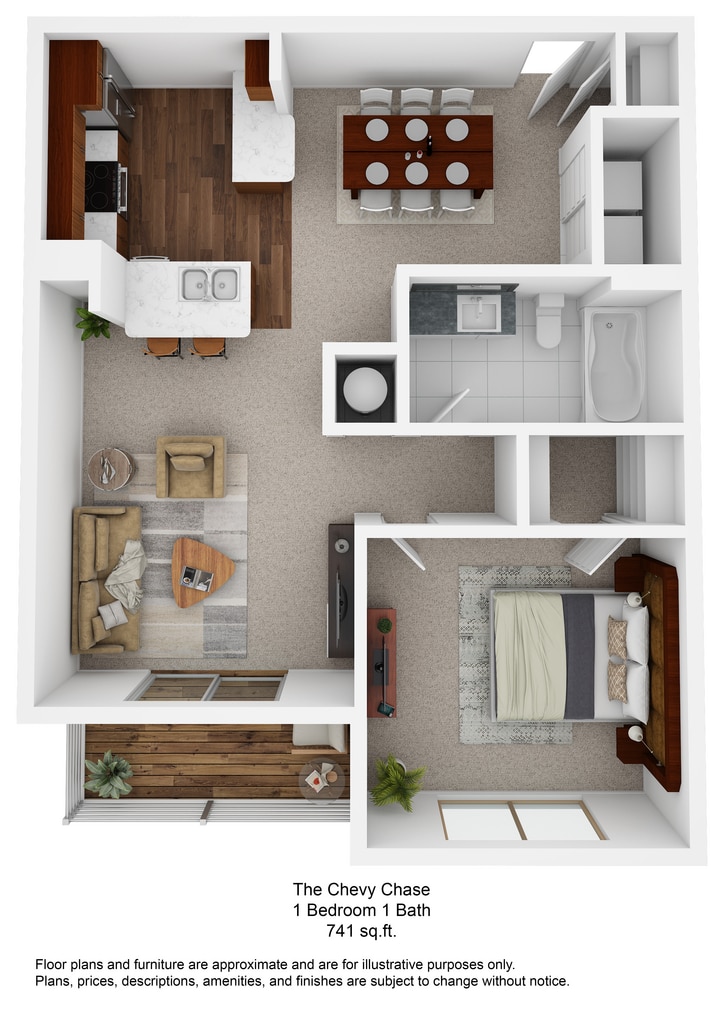 Apartment Model: A1 Chevy Chase - One Bedroom, One BathroomFrom $1,1691 Bedroom, 1 Bath, 741 sq ftAvailable NowFloorplansPhotos![]()