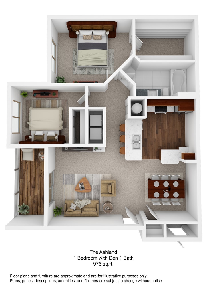 Apartment Model: A2 Ashland - One Bedroom, One BathroomFrom $1,3811 Bedroom, 1 Bath, 976 sq ftAvailable January 31, 2026FloorplansPhotos![]()