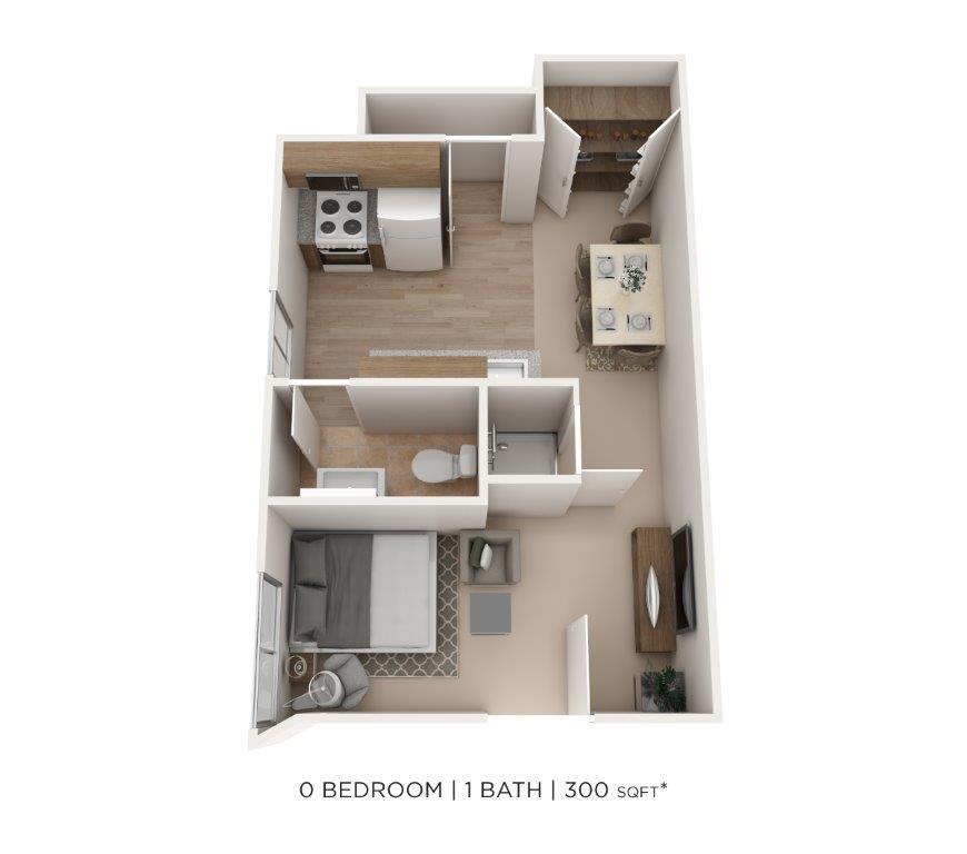 Studio, 1 Bath, 300 sq ftModel Gallery