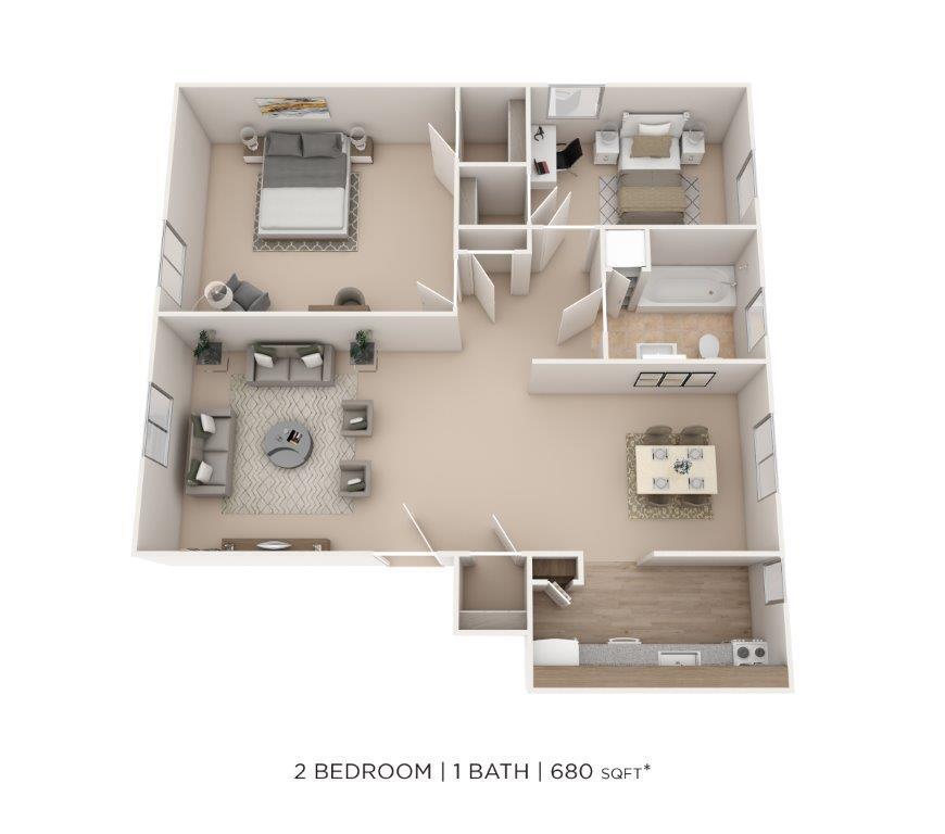 2 Beds, 1 Bath, 680 sq ftAvailable Dec 10Model Gallery