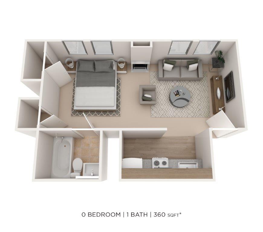 Studio, 1 Bath, 360 sq ftModel Gallery
