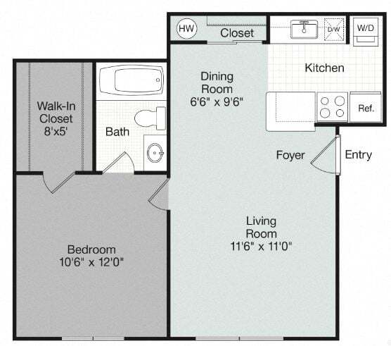 Apartment Model: A1RFrom $9351 Bedroom, 1 Bath, 580 sq ftAvailable NowFloorplansPhotos![]()