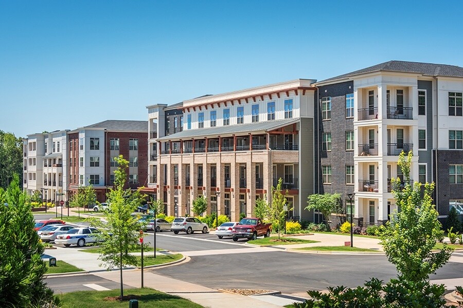 Briley apartments feature luxury studio, one-, two- and three-bedroom homes in Matthews, NC. Our studio, one-, two- and three-bedroom apartment homes feature luxury vinyl plank flooring, granite countertops, stainless steel appliances, built-in bars, USB charging ports, barn-door room dividers, modern baths with framed mirrors and luxury showers. Briley's premium amenities include a 24-hour fitness center, separate yoga/spin studio, sauna, clubhouse, outdoor built-in kitchen, bike storage and maintenance station, direct-to-door package delivery, electric vehicle chargers and dog park. Apartment features are available in select homes.