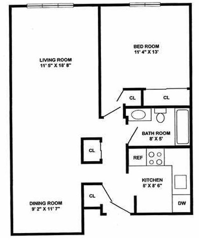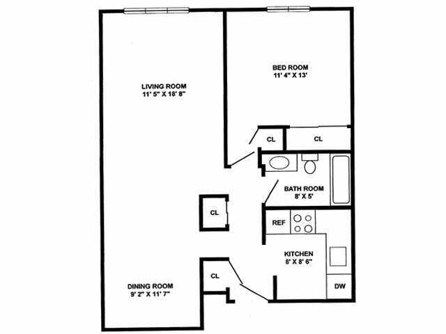 One Bedroom One Bath - Floorplan 1 ![]()
