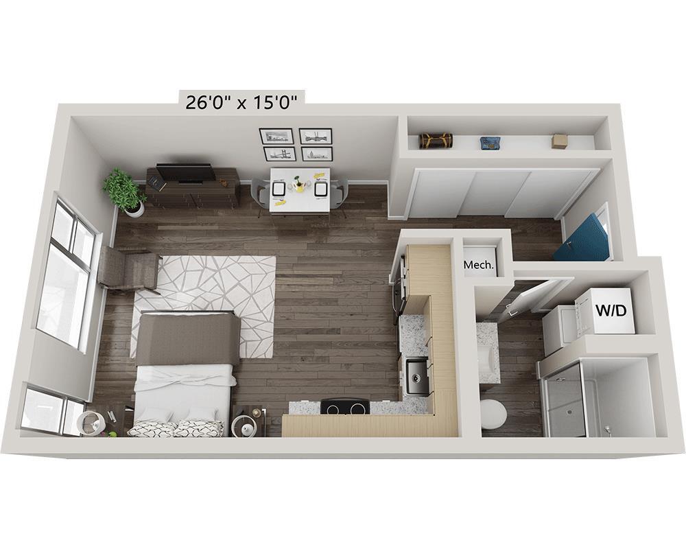 Studio, 1 Bath, 520 sq ftAvailable NowLargest StudioThis is the largest Studio at this PropertyModel Gallery