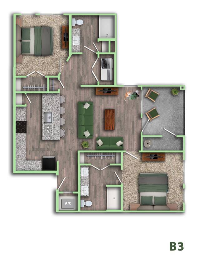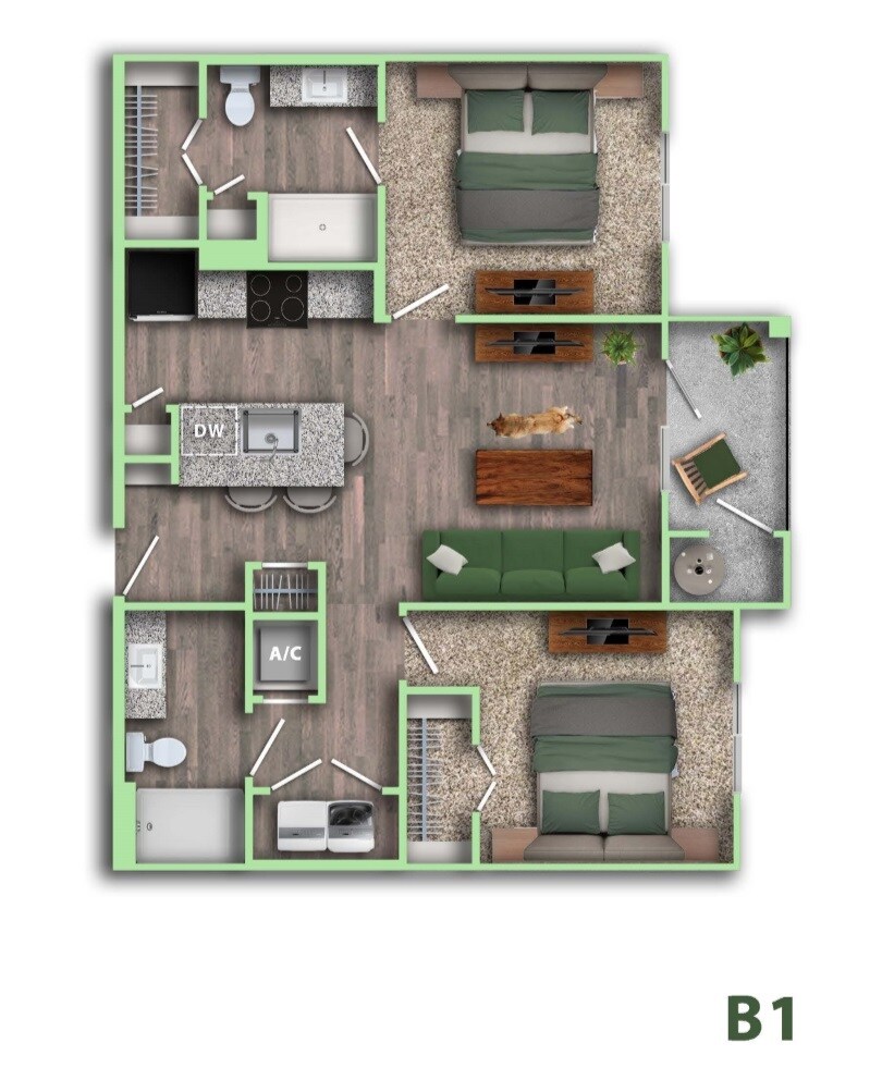 Apartment Model: A2From $1,2571 Bedroom, 1 Bath, 749 sq ftAvailable NowFloorplansPhotos![]()