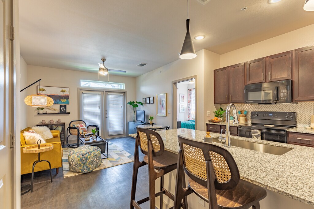 Welcome to Brio at Lookout, an exceptional apartment community in Northeast San Antonio offering thoughtfully designed studio, one, two, and three-bedroom apartments, as well as one and two bedroom townhomes with private garages. Each residence features modern finishes and functional layouts, complemented by amenities like a gaming lawn, wellness center, bark park, and open green spaces. Grab last-minute essentials right onsite at Dillo Market, our convenient on-site store. With a prime location near The Forum and quick access to I-35 and Loop 1604, Brio makes commuting and everyday errands easy. Brio now offers Essential Housing options on studio, one and two bedrooms. Reach out today to learn more about availability and eligibility.