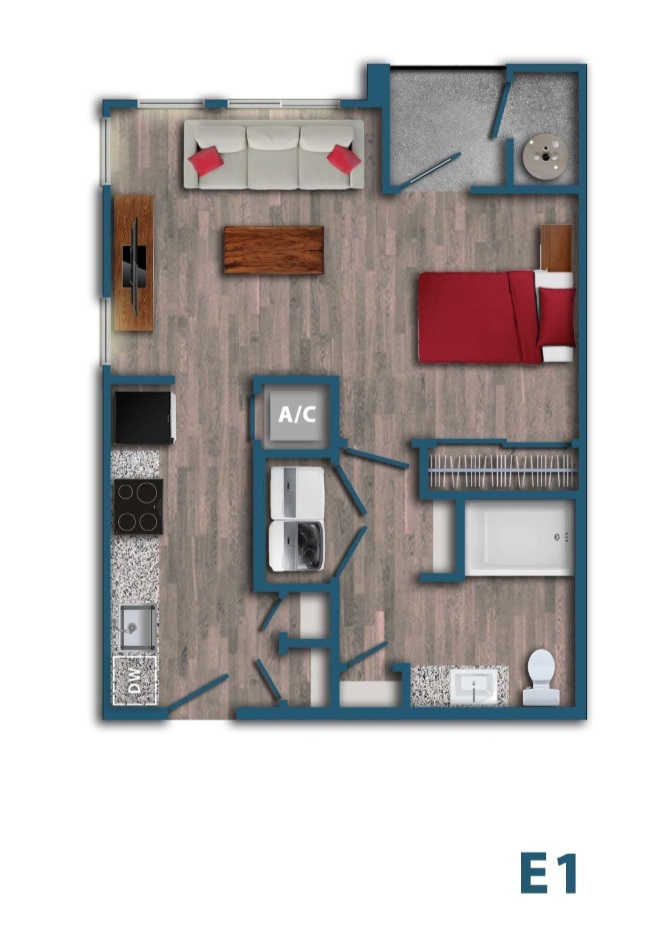 Apartment Model: S1$1,054Studio, 1 Bath, 558 sq ftAvailable Now![]()