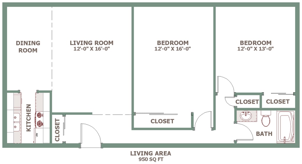 2 Beds, 1 Bath, 950 sq ftModel Gallery
