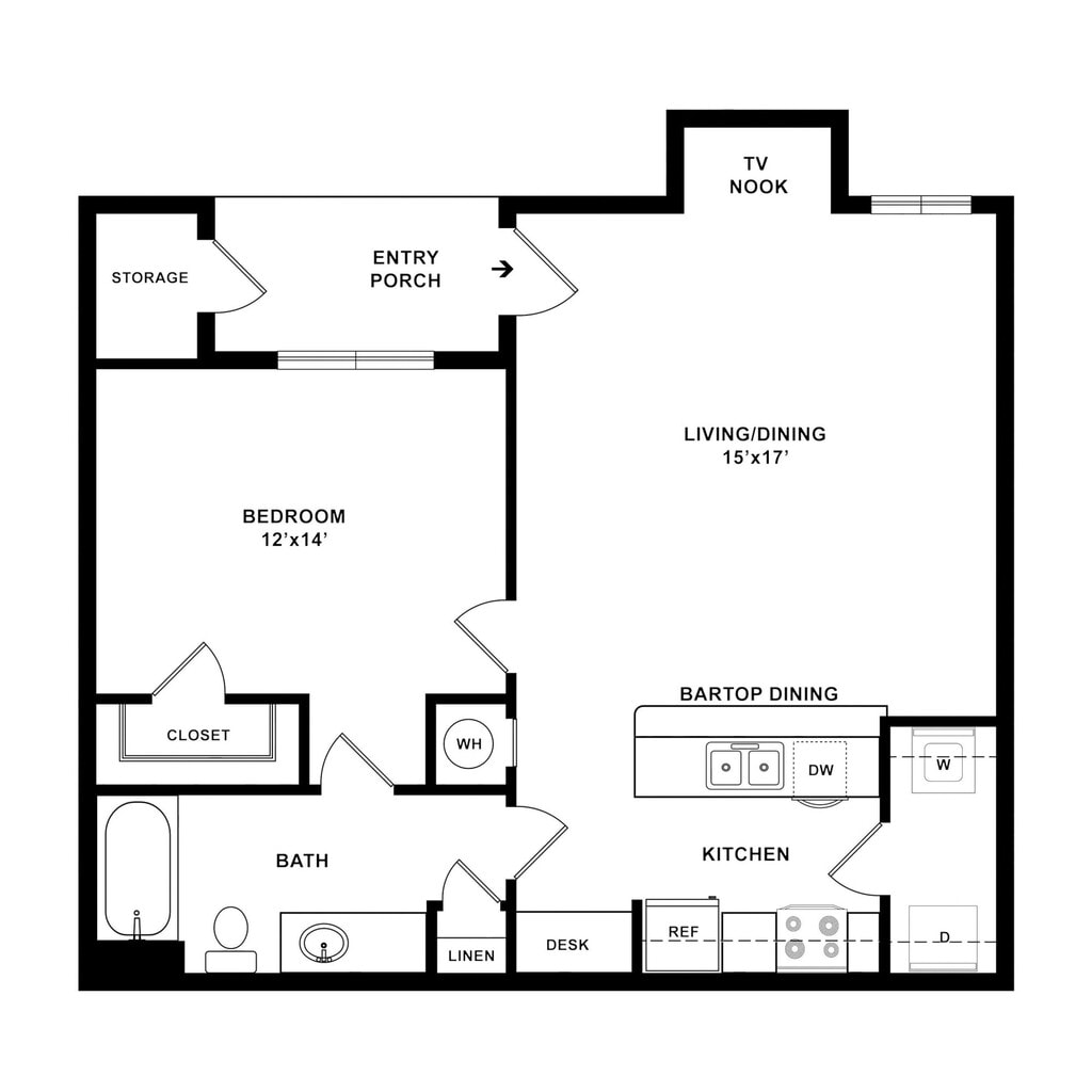 1 Bed, 1 Bath, 677 sq ftAvailable NowModel Gallery