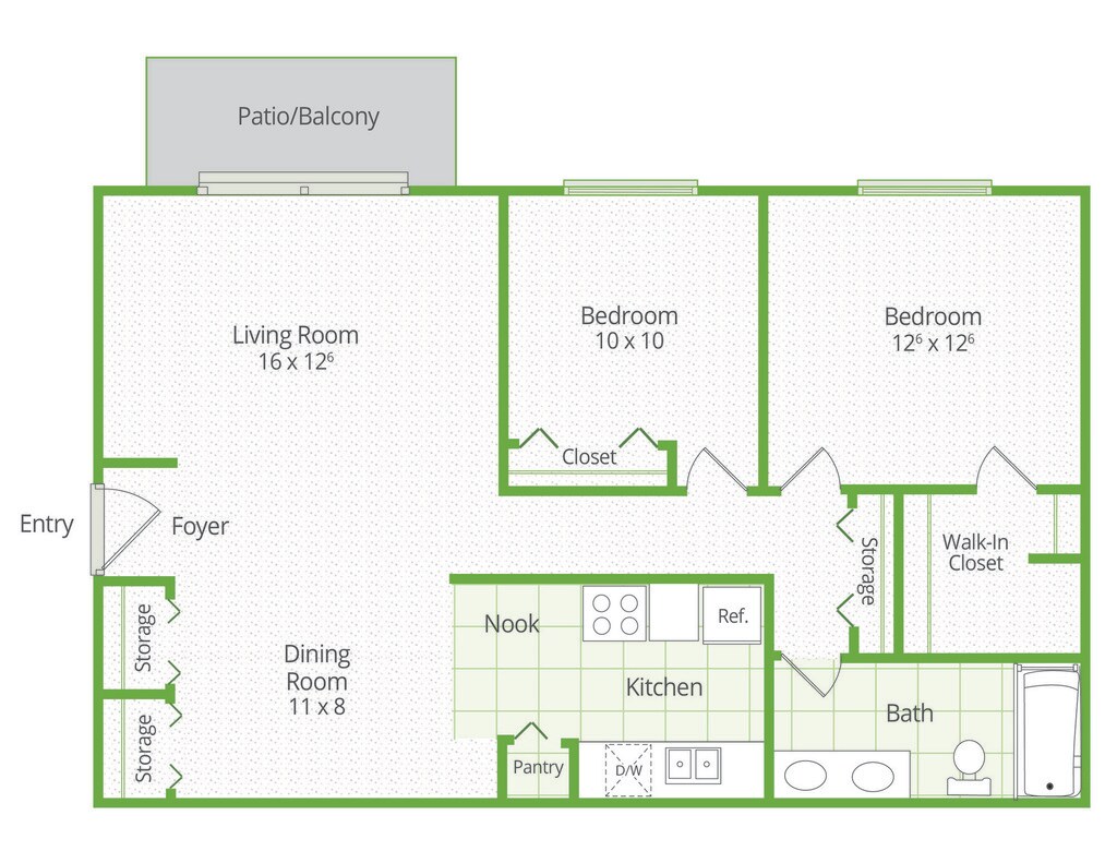 Apartment Model: The Summit$9452 Bedroom, 1 Bath, 1120 sq ftAvailable Now![]()