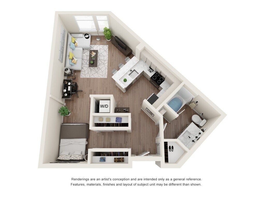 Apartment Model: Studio MStudio, 1 Bath, 633 sq ftAvailable November 18, 2025Floor plans are artist's rendering. All dimensions are approximate. Actual product and specifications may vary in dimension or detail. Not all features are available in every rental home. Prices and availability are subject to change. Base rent is based on monthly frequency. Additional fees may apply, such as but not limited to package delivery, trash, water, amenities, etc. Deposits vary. Please see a representative for details.