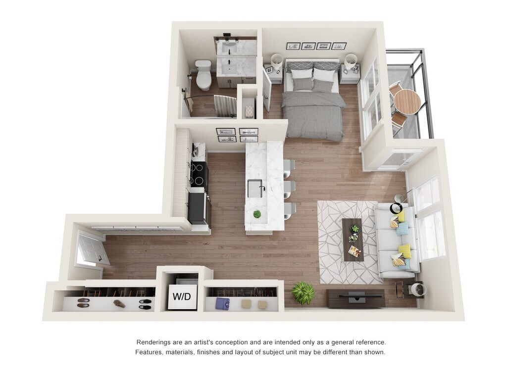 Apartment Model: Studio FStudio, 1 Bath, 559-610 sq ftAvailable NowFloor plans are artist's rendering. All dimensions are approximate. Actual product and specifications may vary in dimension or detail. Not all features are available in every rental home. Prices and availability are subject to change. Base rent is based on monthly frequency. Additional fees may apply, such as but not limited to package delivery, trash, water, amenities, etc. Deposits vary. Please see a representative for details.