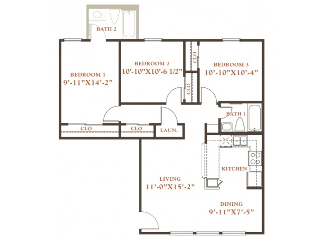 Apartment Model: Elm3 Bedroom, 1 Bath, 968 sq ftUnavailable![]()