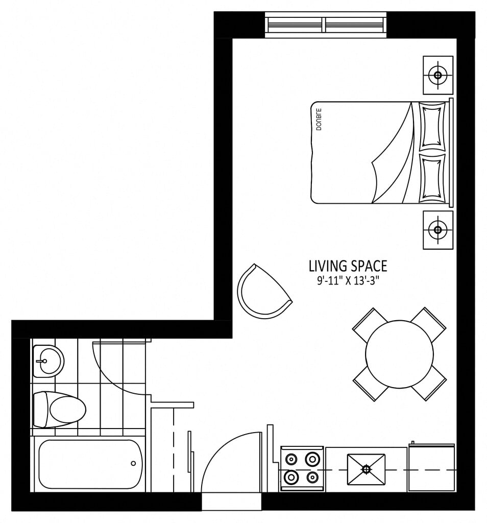 Studio, 1 Bath, 290 sq ftAvailability Details