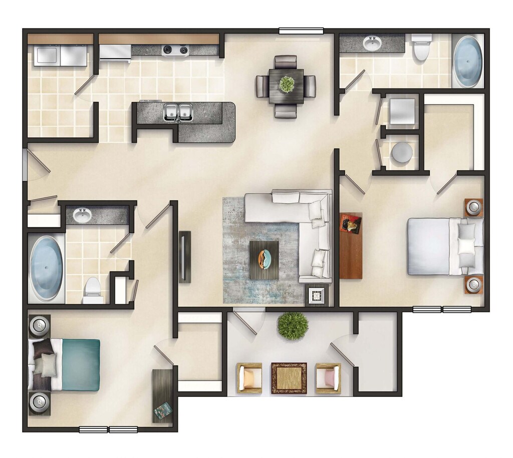 3 Beds, 2 Baths, 1263 sq ftAvailable NowModel Gallery