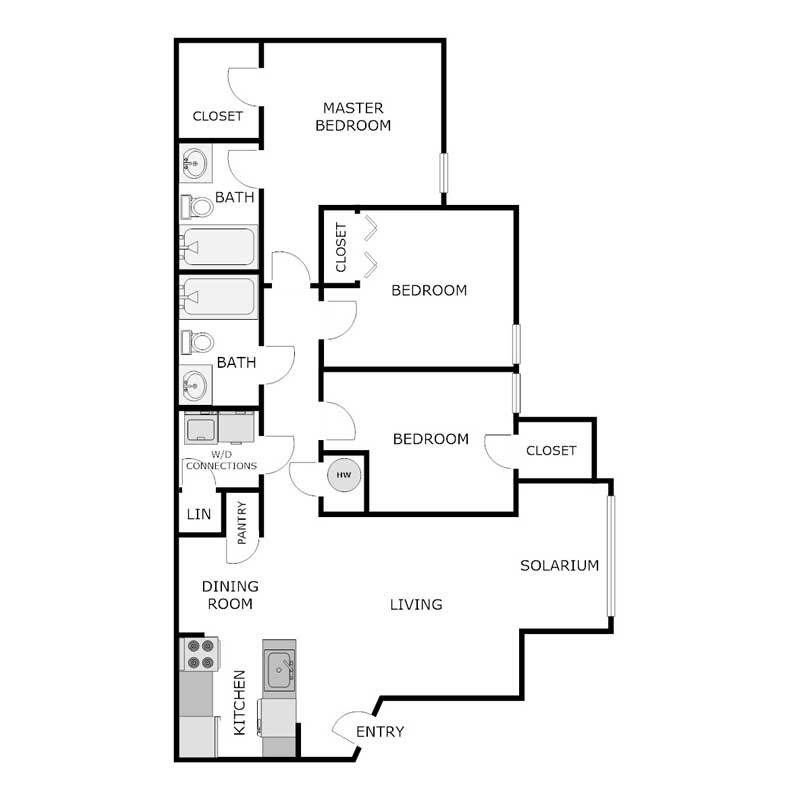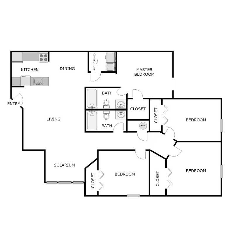 Apartment Model: 3 Bedroom 2 Bathroom3 Bedroom, 2 Bath, 1230 sq ftUnavailable3 Bedroom 2 Bathroom - Floorplan 1 4 Bedrooms