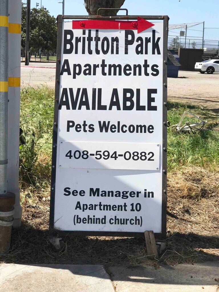 CONTACT: (408) 594+0882 [Phone or Text] (the phone number at the bottom of this ad does NOT receive texts) EMAIL: [email address removed] Britton Park Apts. 565 Britton Avenue Sunnyvale, Ca, 94085 PETS WELCOME! Size: 2 BR / 1 Ba Square Feet: 940 Term: 6-month lease CALL for fastest response: If no one is available to answer the phone, PLEASE leave a message and someone WILL call you back. Britton Park Apartments is adjacent to Beautiful Fair Oaks Park. The park features basketball, track, baseball, picnic and childrens' play areas. Amenities: Pets Welcome (breed restricted) Cable Hook Disposal Satellite Hookup Large Closets Laundry Facilities Britton Park is a quiet, well maintained community near major electronics and high tech industries. It has a perfect location in the Heart of Silicon Valley. It is ultra convenient to freeways: 280, 101, 85 & 237. MAJOR SHOPPING NEARBY: Vallco Fashion Park Valley Fair Shopping Center Sunnyvale Town Center Mercado Shopping Center NEARBY COLLEGES: San Jose State University Santa Clara University San Jose City College De Anza College Mission College NOTE: We have other desirable apartments in Mountain View, Sunnyvale, Santa Clara and San Jose. Please call for information: 650-537+8178 or 408-735+9584