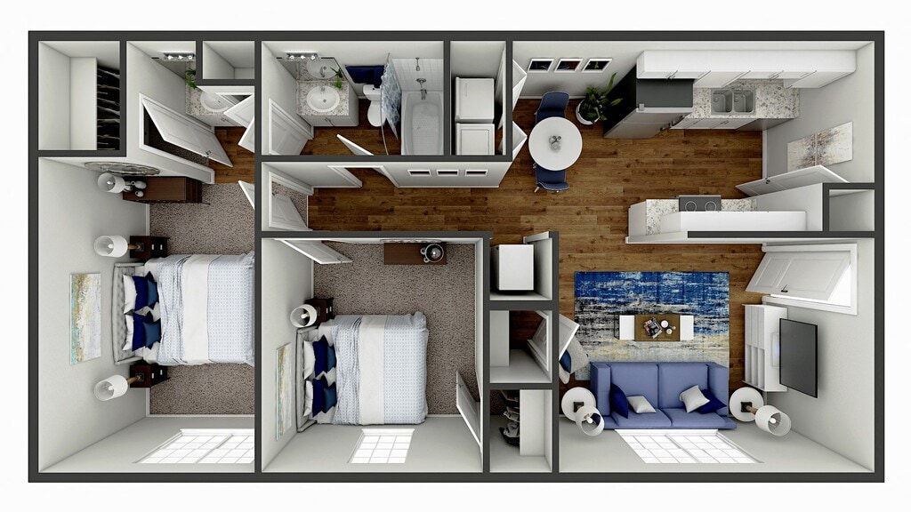 2 Beds, 2 Baths, 916 sq ftAvailable NowModel Gallery