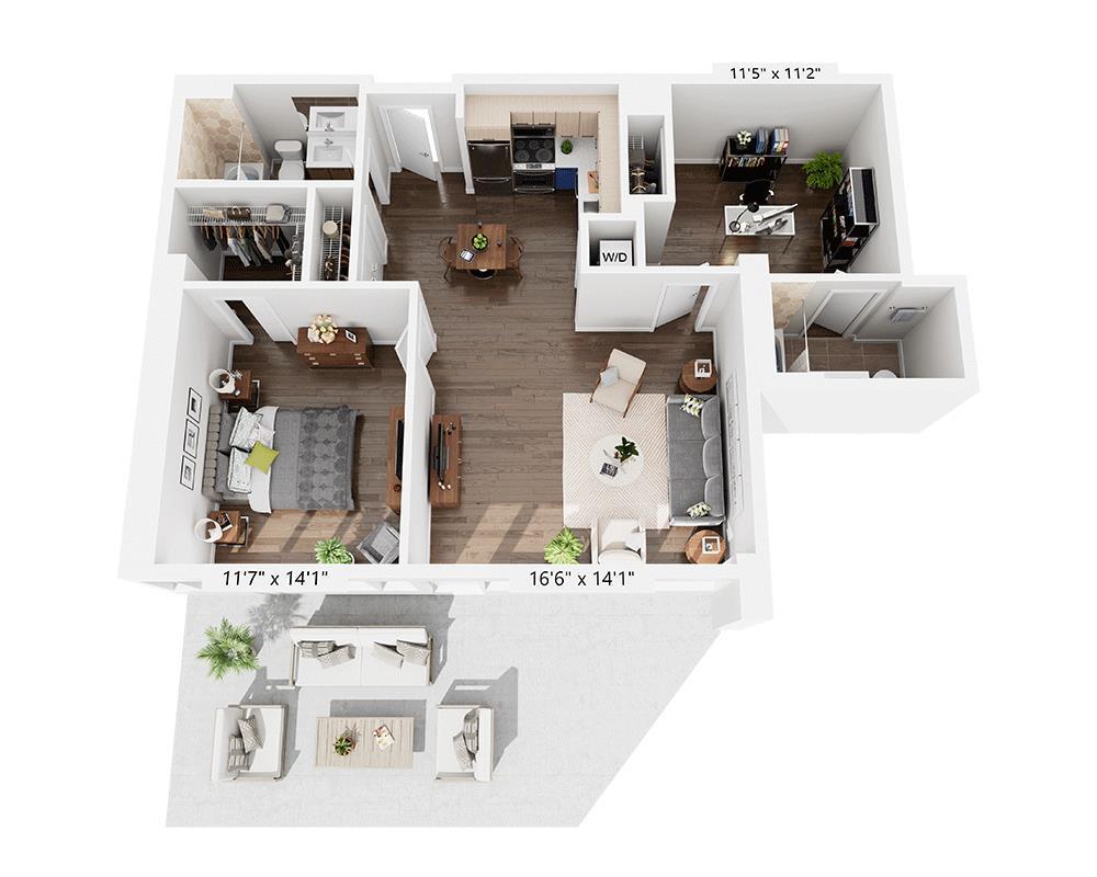 Studio E1F - Floorplan 1 Apartment Unit: 1-0610Apartment Model: Studio E1F$1,371Studio, 1 Bath, 391 sq ftAvailable NowFloorplansPhotos![]()