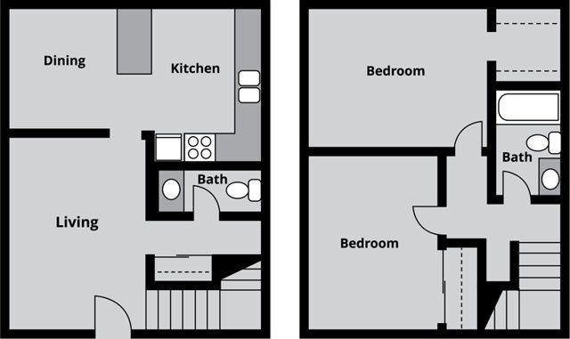 2 Beds, 1 Bath, 1030 sq ftAvailable NowLargest 2 BedroomThis is the largest 2 Bedroom at this PropertyModel Gallery